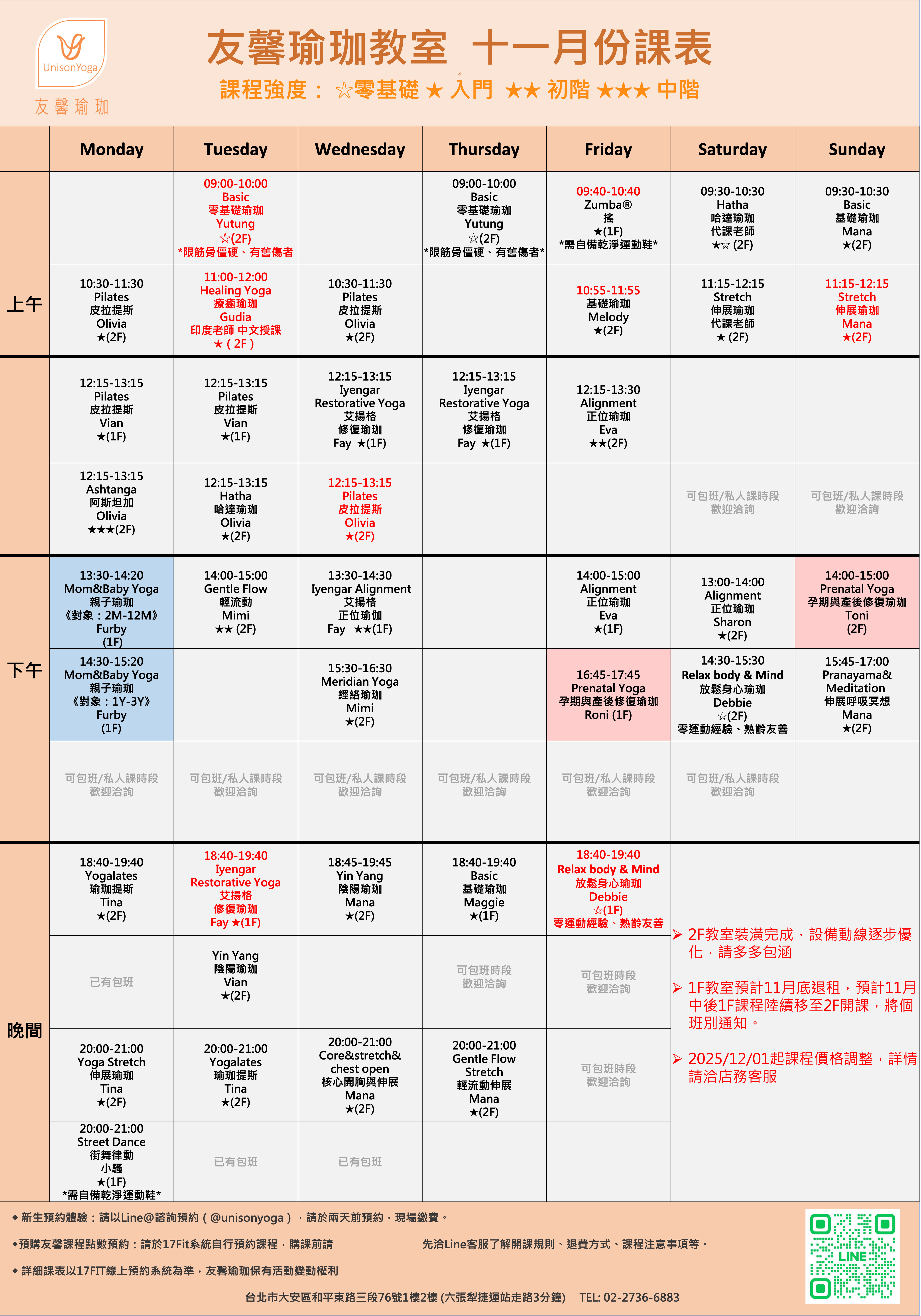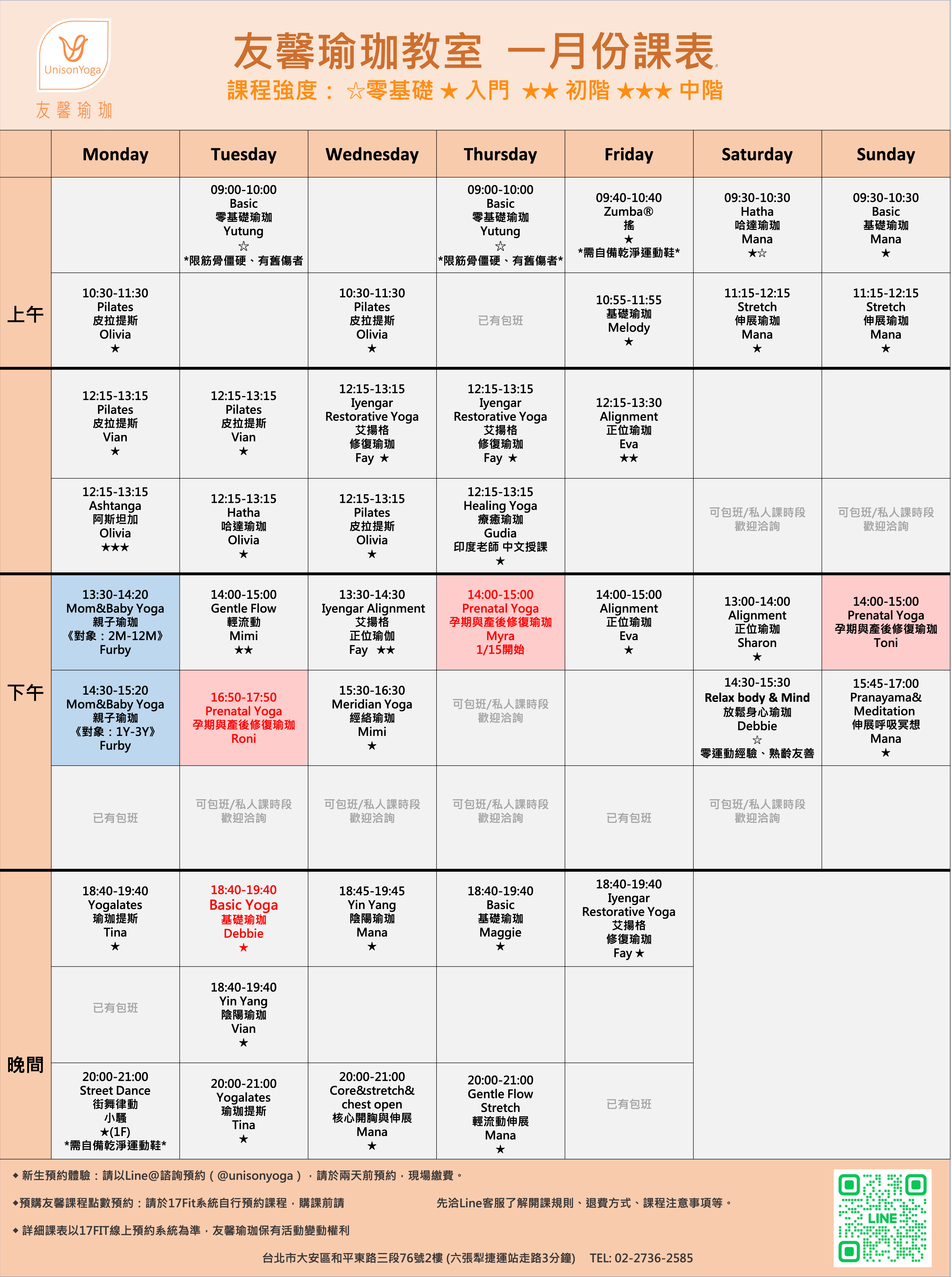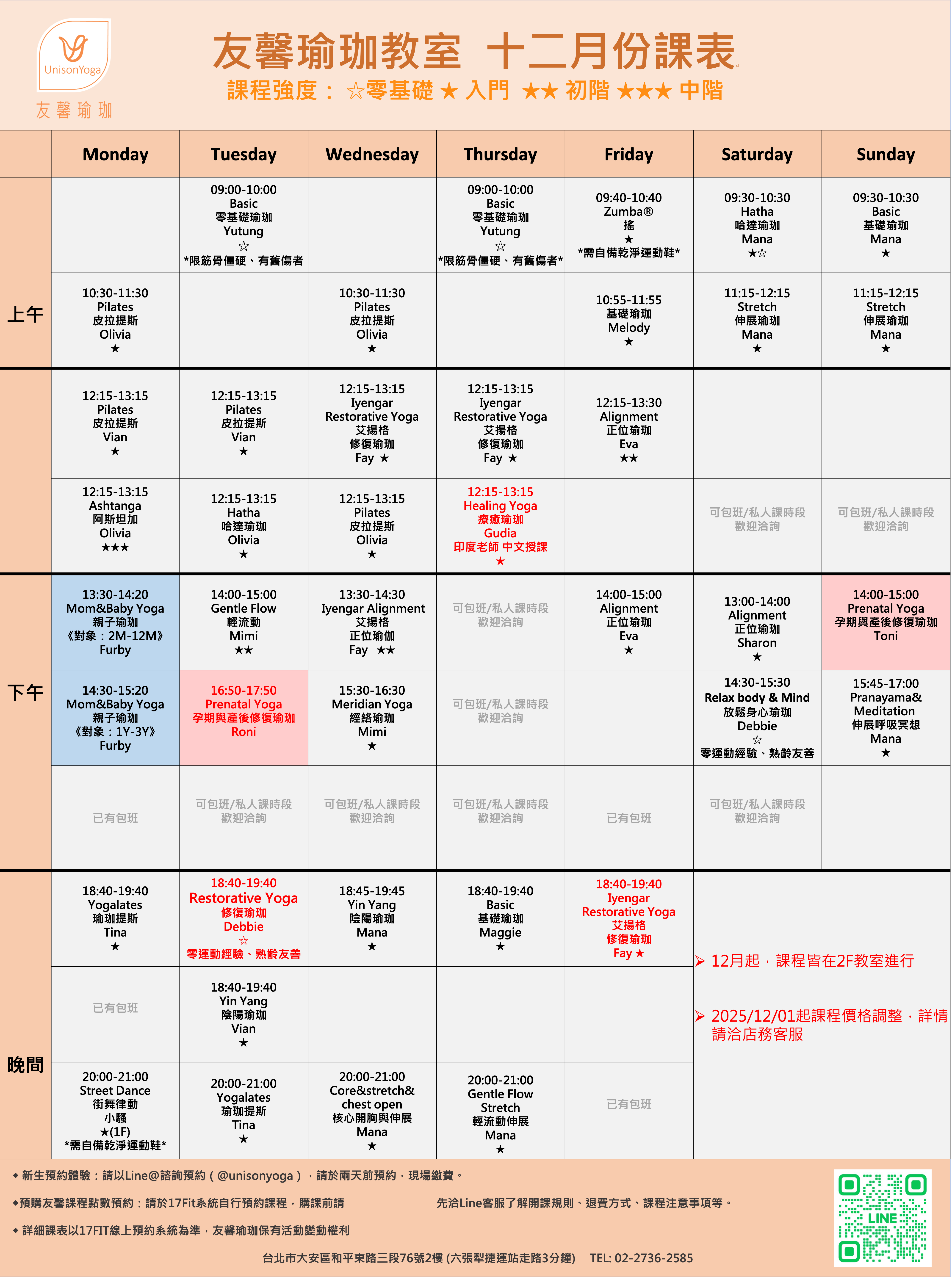 請加Line預約,Line ID : @unisonyoga 或是掃描課表右下角的QR Code